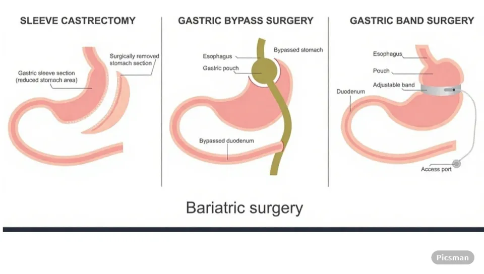 Sleeve Gastrectomy – Removes part of the stomach to limit food intake.